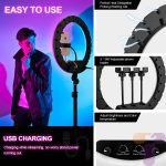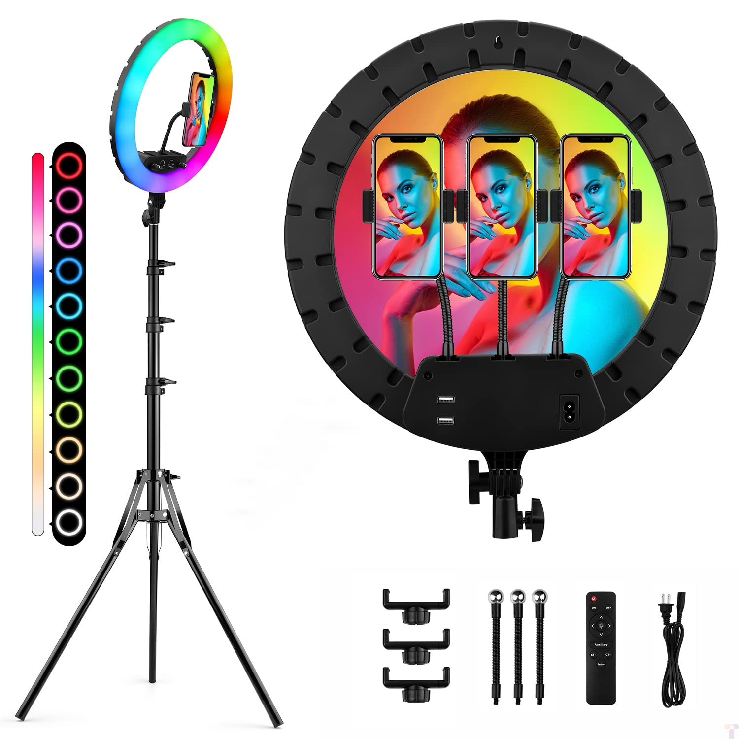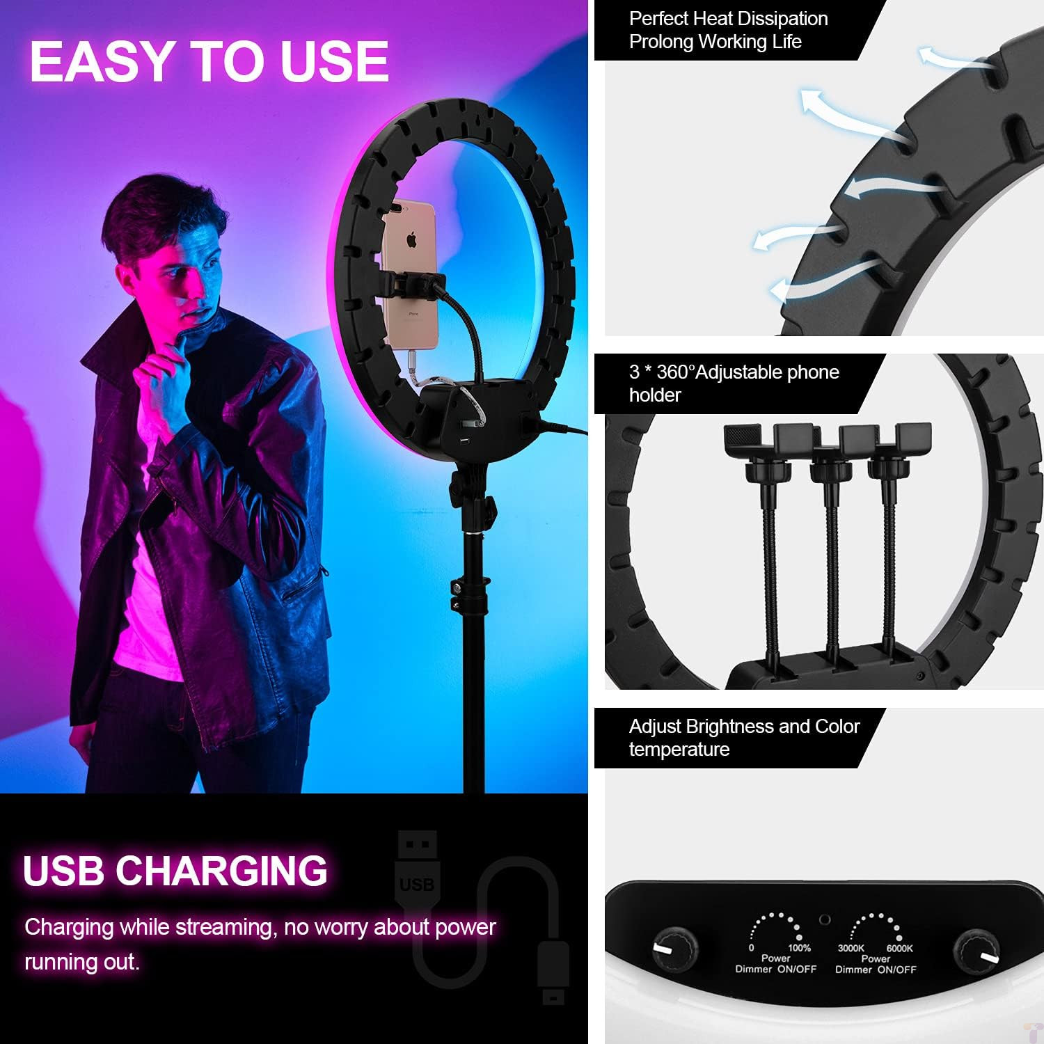 - 【Adjustable 15 RGB Colors】Led Ring Light with 15 color lights mode, 11 adjustable brightness for you to choose from. The professional Ring Light will come in handy whenever you need extra light for making up, taking photos, making videos, reading books, and live streaming!